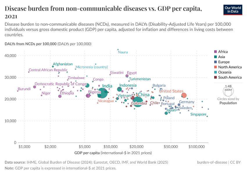 The visualizations here focus on the disease burden resulting from non-communicable diseases (NCDs).