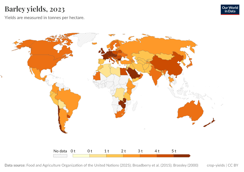Hannah Ritchie, Pablo Rosado, and Max Roser (2022) - “Crop Yields” Published online at OurWorldinData.org. Retrieved from: 'https://ai-index.owid.pages.dev/crop-yields' [Online Resource]BibTeX citation