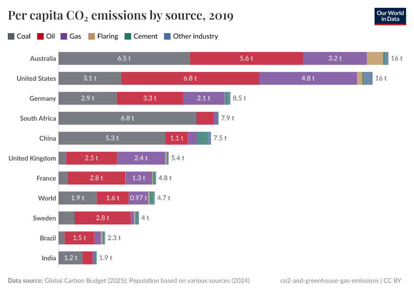 Per capita: How do coal, oil, gas, and cement emissions compare?