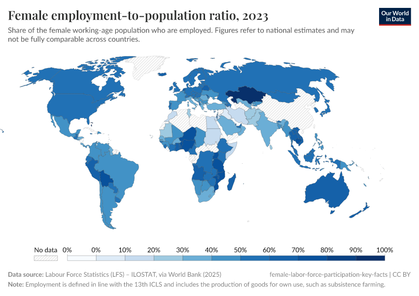 Female employment-to-population ratio using ILO modeled estimates