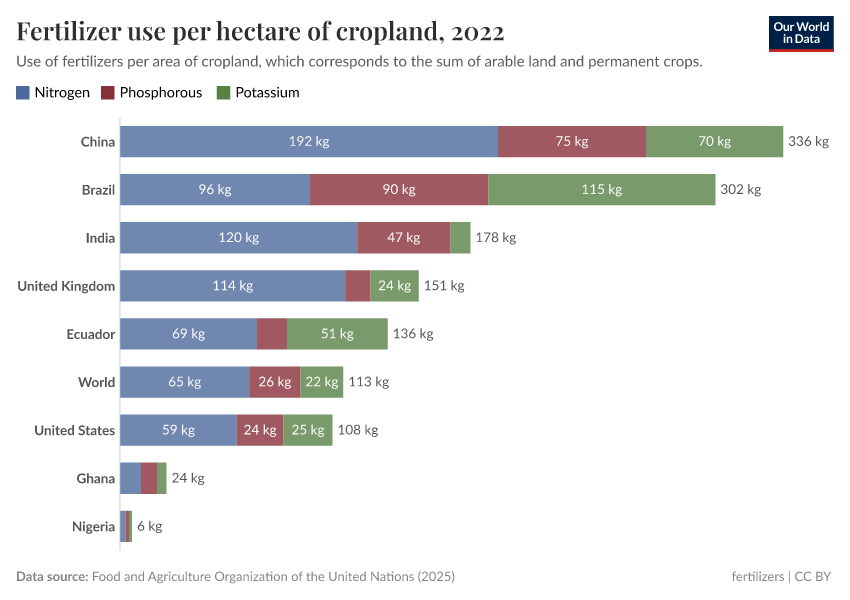 Hannah Ritchie, Max Roser, and Pablo Rosado (2022) - “Fertilizers” Published online at OurWorldinData.org. Retrieved from: 'https://ai-index.owid.pages.dev/fertilizers' [Online Resource]BibTeX citation