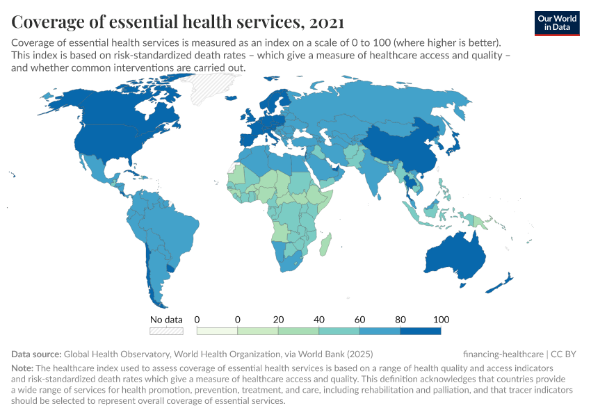 “Data Page: Coverage of essential health services”. Our World in Data (2025). Data adapted from World Health Organization. Retrieved from https://ai-index.owid.pages.dev/grapher/healthcare-access-quality-un [online resource]How to cite this data