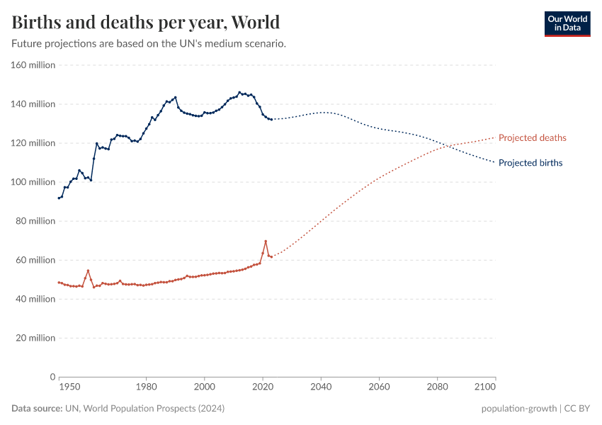 Hannah Ritchie, Lucas Rodés-Guirao, Edouard Mathieu, Marcel Gerber, Esteban Ortiz-Ospina, Joe Hasell, and Max Roser (2023) - “Population Growth” Published online at OurWorldinData.org. Retrieved from: 'https://ai-index.owid.pages.dev/population-growth' [Online Resource]BibTeX citation