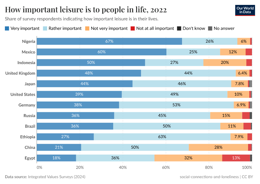Esteban Ortiz-Ospina, Charlie Giattino, and Max Roser (2020) - “Time Use” Published online at OurWorldinData.org. Retrieved from: 'https://ai-index.owid.pages.dev/time-use' [Online Resource]BibTeX citation